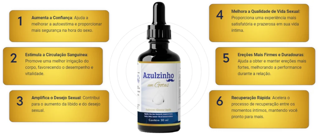 Azulzinho em Gotas é o suplemento que estimula a circulação, melhora o desempenho e aumenta a libido, tudo de forma natural e segura. Ele ajuda você a se sentir mais disposto e preparado para viver ao máximo, sempre que quiser.